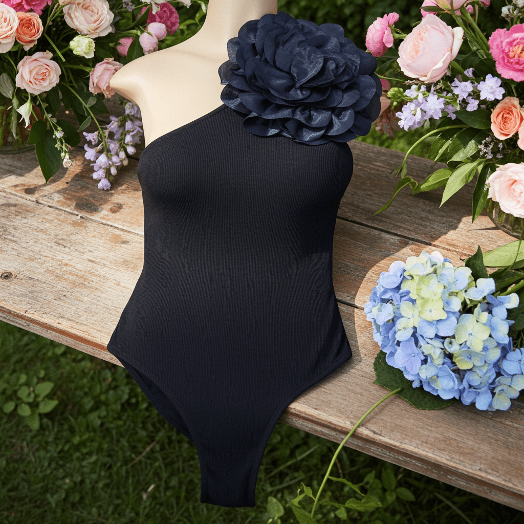 Bodysuit de diseño asimétrico que realza la silueta de forma sofisticada. Confeccionado en tela suave y elástica para un ajuste cómodo y favorecedor. Su espectacular flor 3D en el hombro añade un toque femenino y moderno, convirtiéndolo en una pieza protagonista ideal para ocasiones especiales o looks elevados de día y noche.