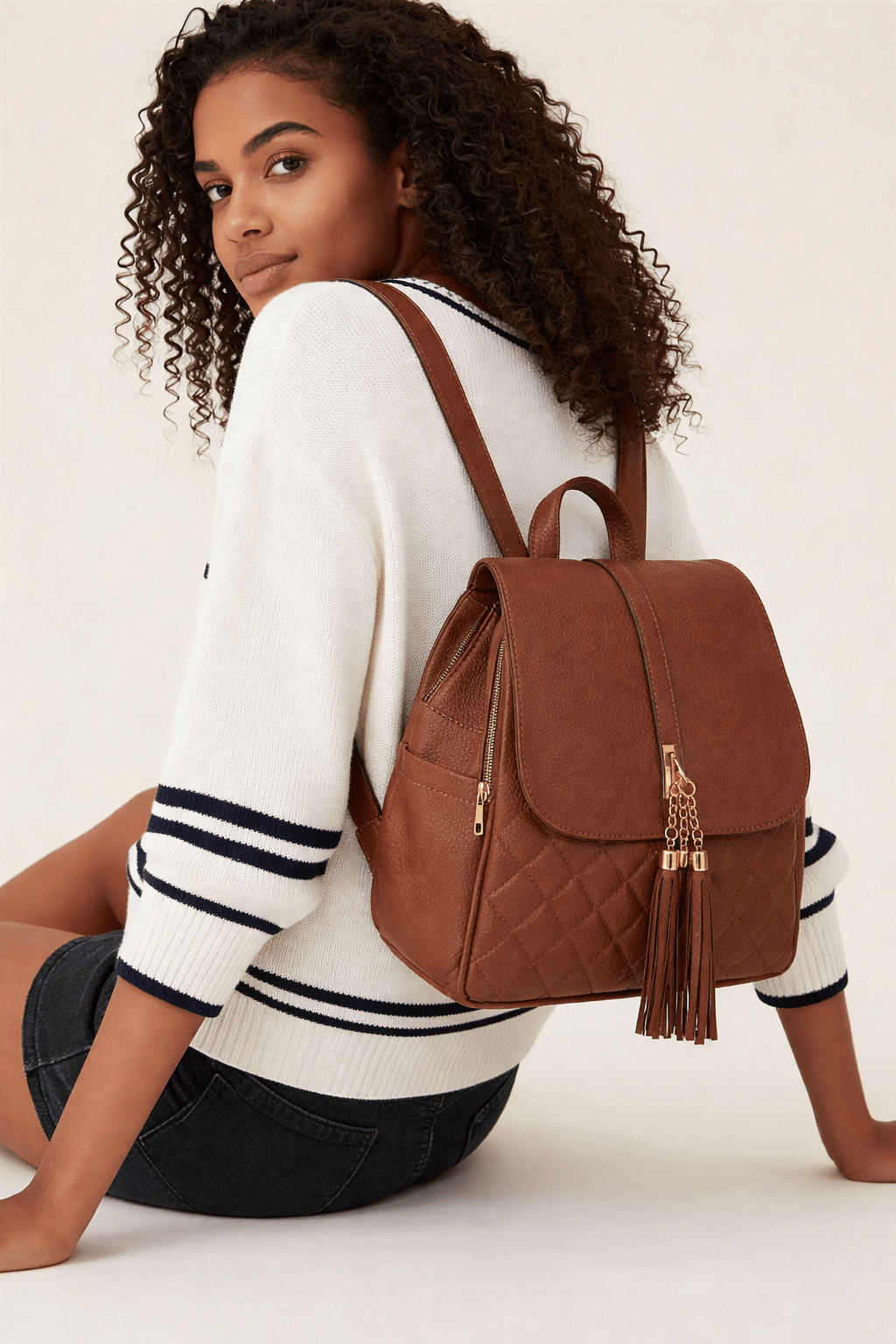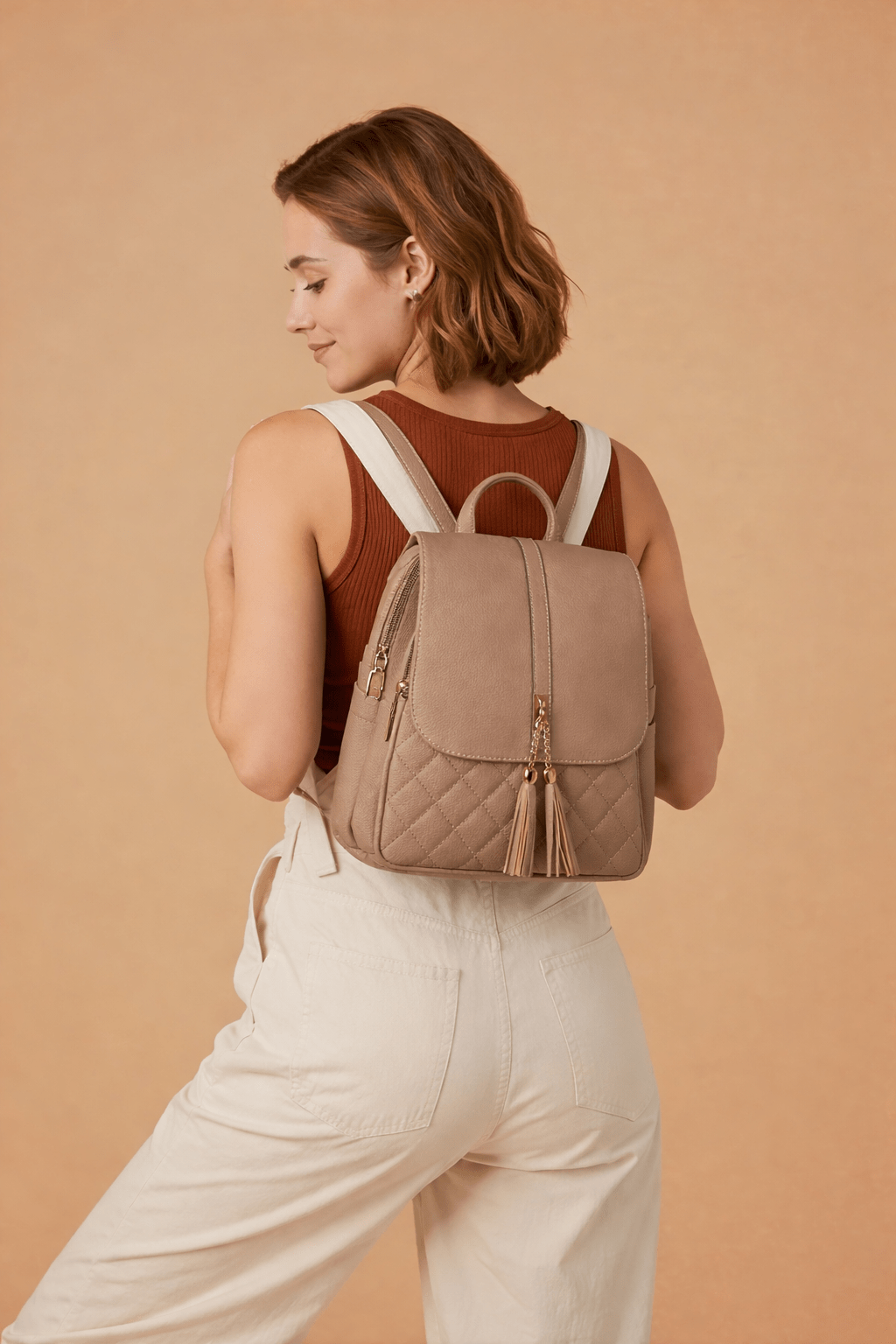Eleva tu estilo diario con esta cartera tipo backpack que combina elegancia, funcionalidad y un diseño moderno. Su acabado acolchado en patrón diamante y sus delicadas borlas decorativas la convierten en el complemento perfecto para cualquier ocasión, desde el día a día hasta salidas especiales.