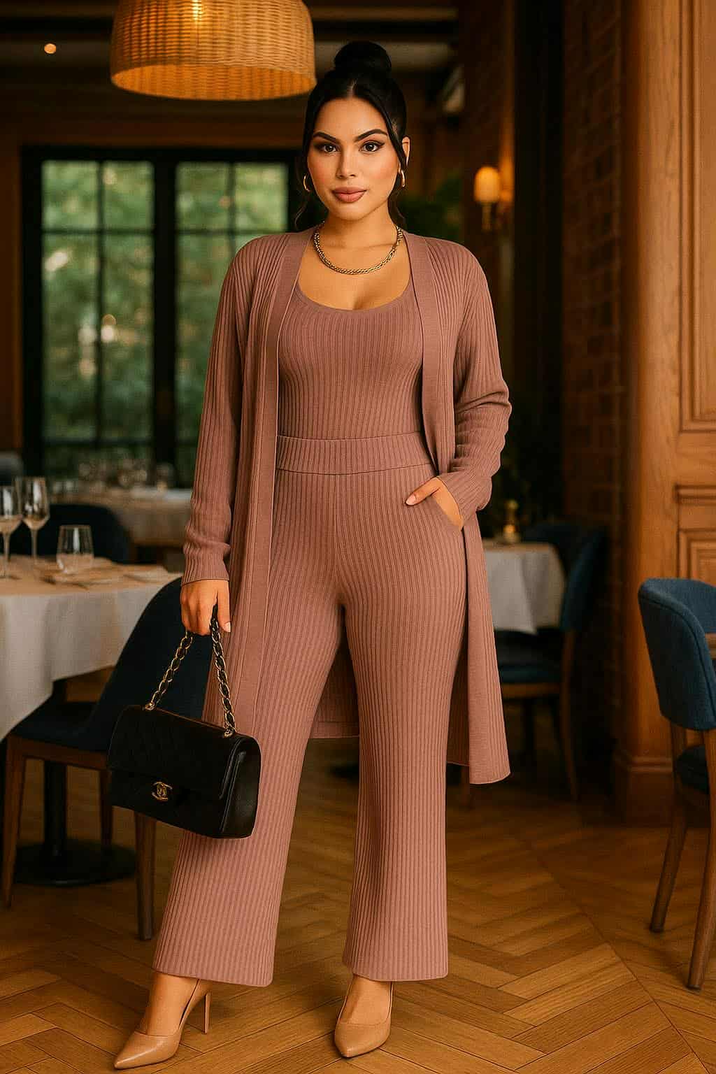 Conjunto moderno y versátil de tres piezas que eleva cualquier look con estilo y elegancia. Diseñado para brindar comodidad sin perder sofisticación, perfecto para múltiples ocasiones.