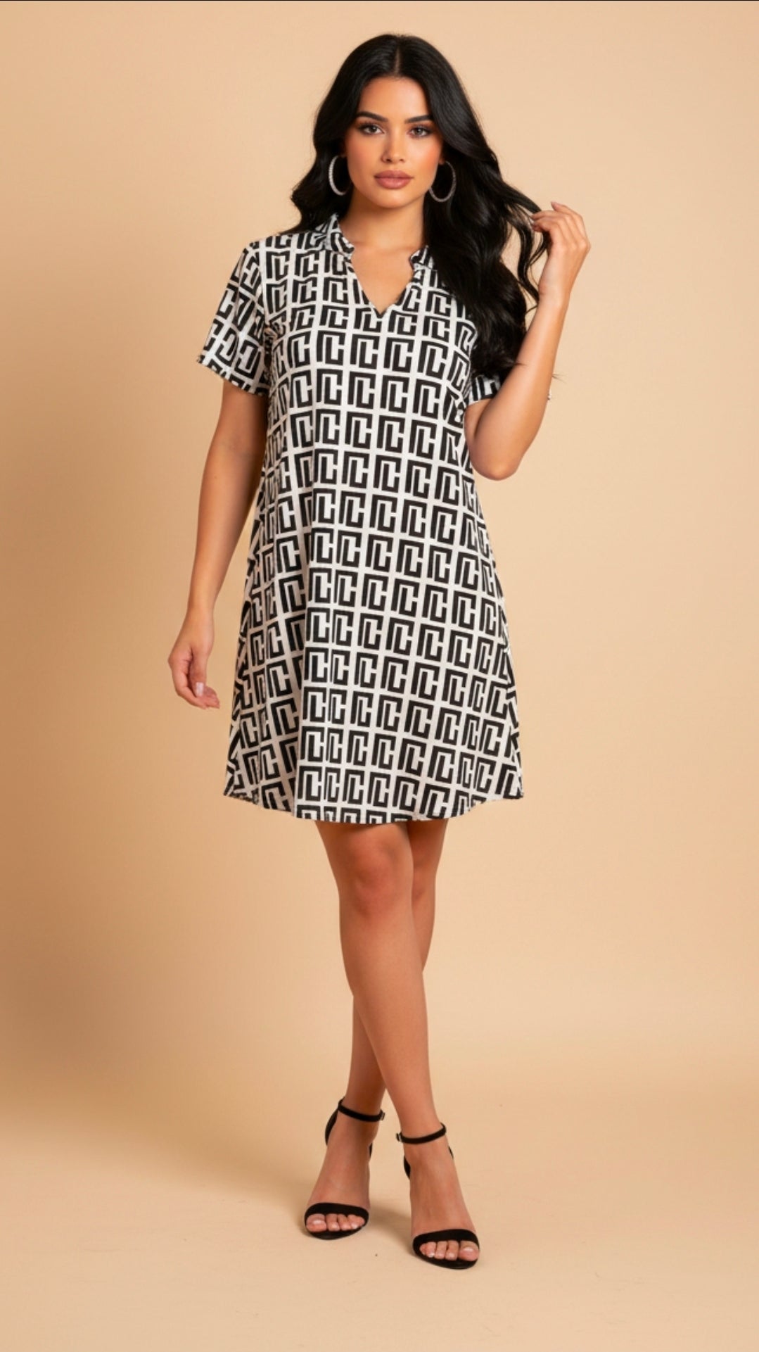 Eleva tu estilo con este vestido midi de diseño moderno y sofisticado, perfecto para mujeres que buscan comodidad sin perder elegancia. Su estampado geométrico le aporta un toque chic y actual, mientras su silueta fluida estiliza la figura de forma natural.